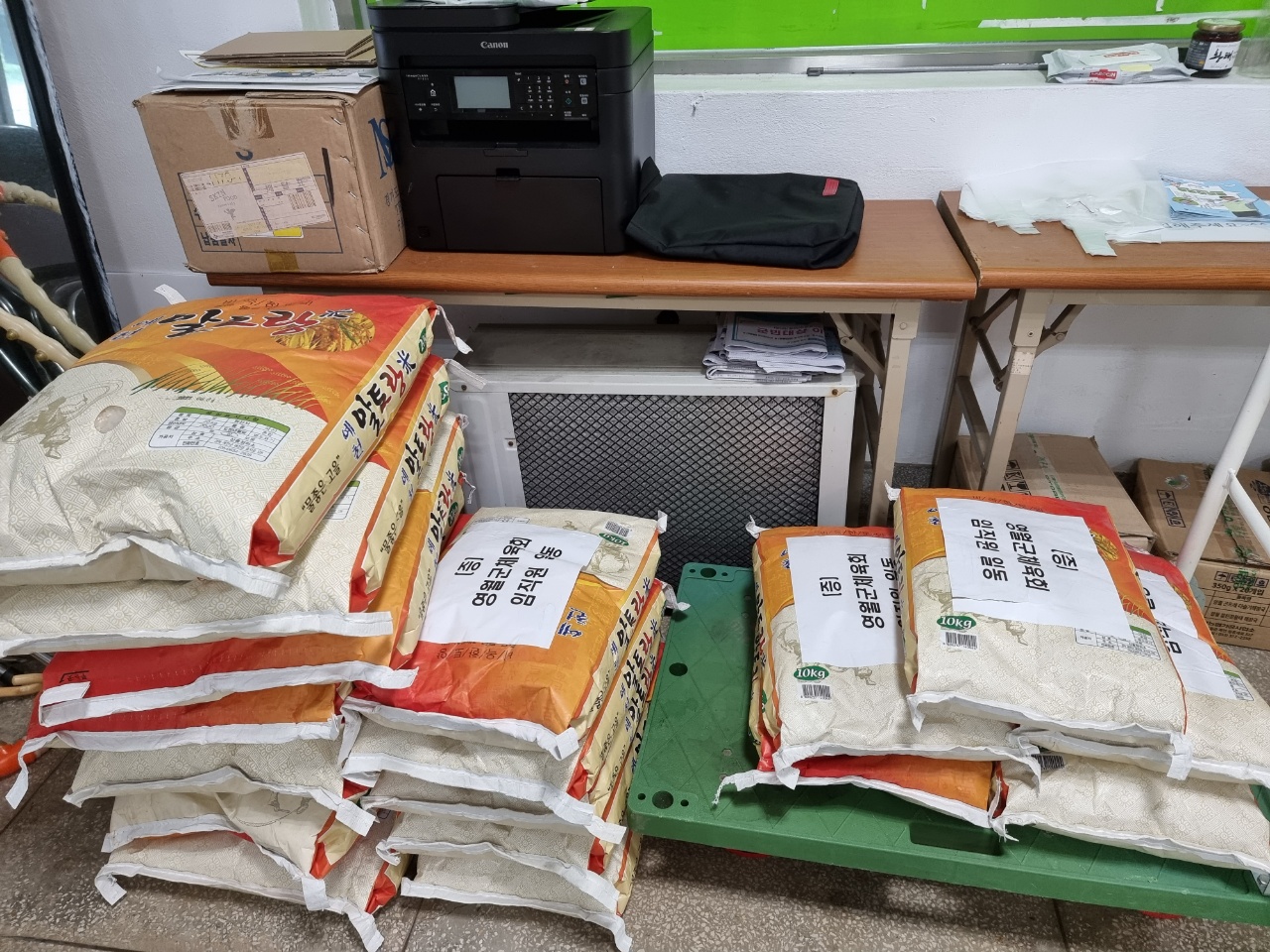 영월군체육회에서 후원한 쌀을 독거노인어르신및 요양원에 전달하였다
